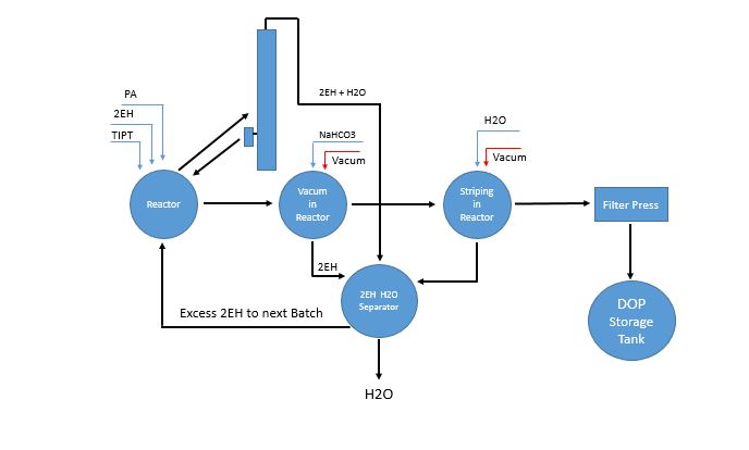 DOP için gerekli hammaddeler : 2EH (2 Etil hekzanol), PA (Fitalik Anhidrit)