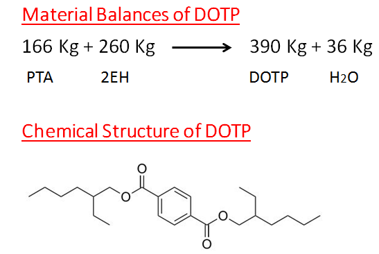 DOTP için gerekli hammaddeler : 2EH (2 Etil hekzanol), PTA (tereftalik asit)