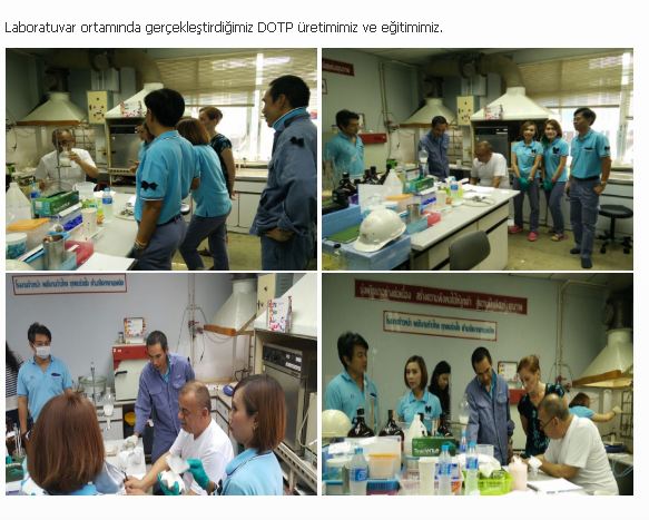 Güneydoğu Asya'da bulunan, 1996 yılından bugüne DOP ve DINP üretimi gerçekleştirmeye devam eden, alanında lider Tayland firmasına vermiş olduğumuz "Know-how" Danışmanlık Hizmetimiz ile DOTP ( Dioctyl Terephthalate ) üretim eğitimimizi gerçekleştirdik.